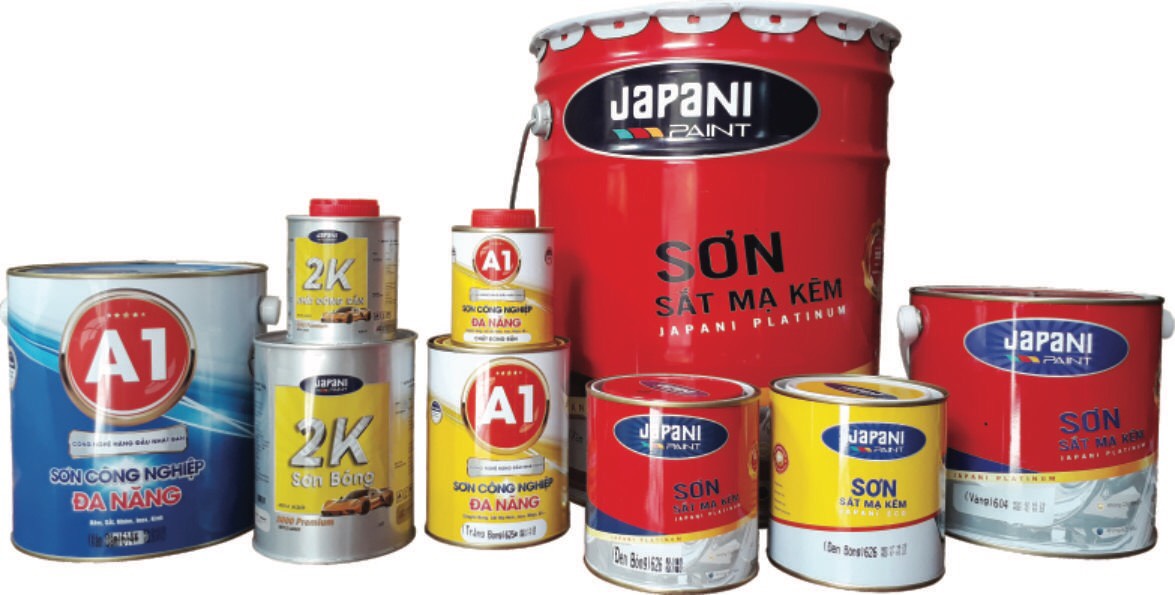 - Sơn JAPANI – Sơn sắt mã kẽm dùng để sơn phủ và trang trí bảo vệ, tăng độ bền nâng cao tuổi thọ cho các công trình sản phẩm ở các môi trường khắc nhiệt, như máy móc, cấu kiện nhà xưởng , tàu biển, gỗ, tàu gỗ, Sắt thép, kính, đồng, phương tiên giao thông nhà xưởng hoặc lền bê tông …vv
